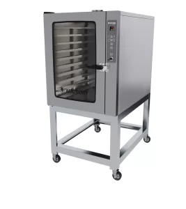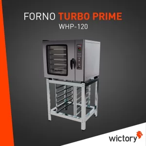Eleve o padrão de qualidade dos seus preparos! O Forno Turbo WHP-120 Wictory otimiza a produção em confeitarias e entrega até 120 pães por fornada ou até 42 bolos no formato inglês. Por possuir termopar, possibilita um controle preciso de temperatura na câmara de cocção que, em conjunto ao calor homogêneo, proporciona maior rapidez e uniformidade aos assados. Possui como opcional a assadeira de 40x60cm em alumínio perfurado, que permite 20 pães de 50g por assadeira.